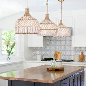 Chandeliers, pendants, and island lights can take (and provide) the spotlight in any room they inhabit. From a grand chandelier glittering above a dining table to a pair of elegant pendants framing a bath vanity, these fixtures are sure to shine in both form and function. For more subtle ambient lighting, consider flush and semi-flush mounts that demand less space but illuminate just as effectively.